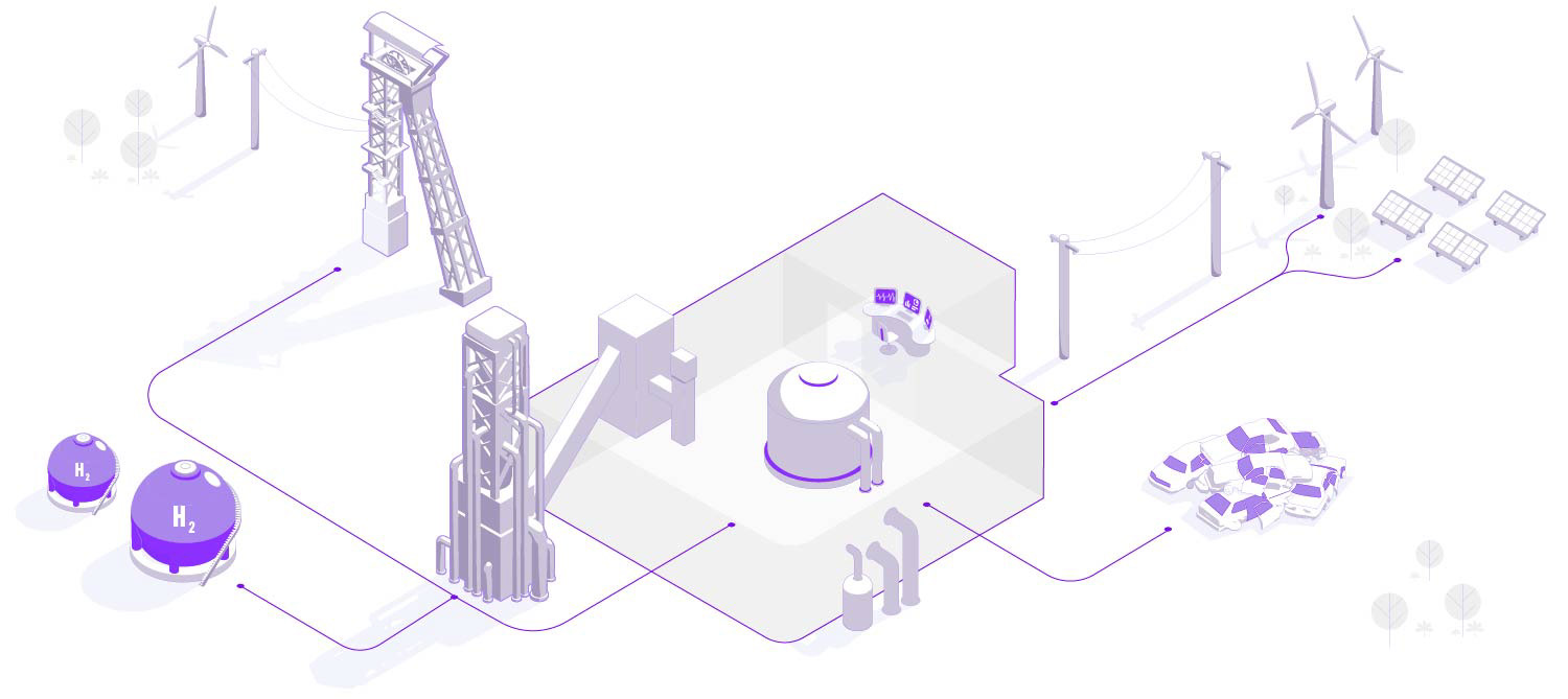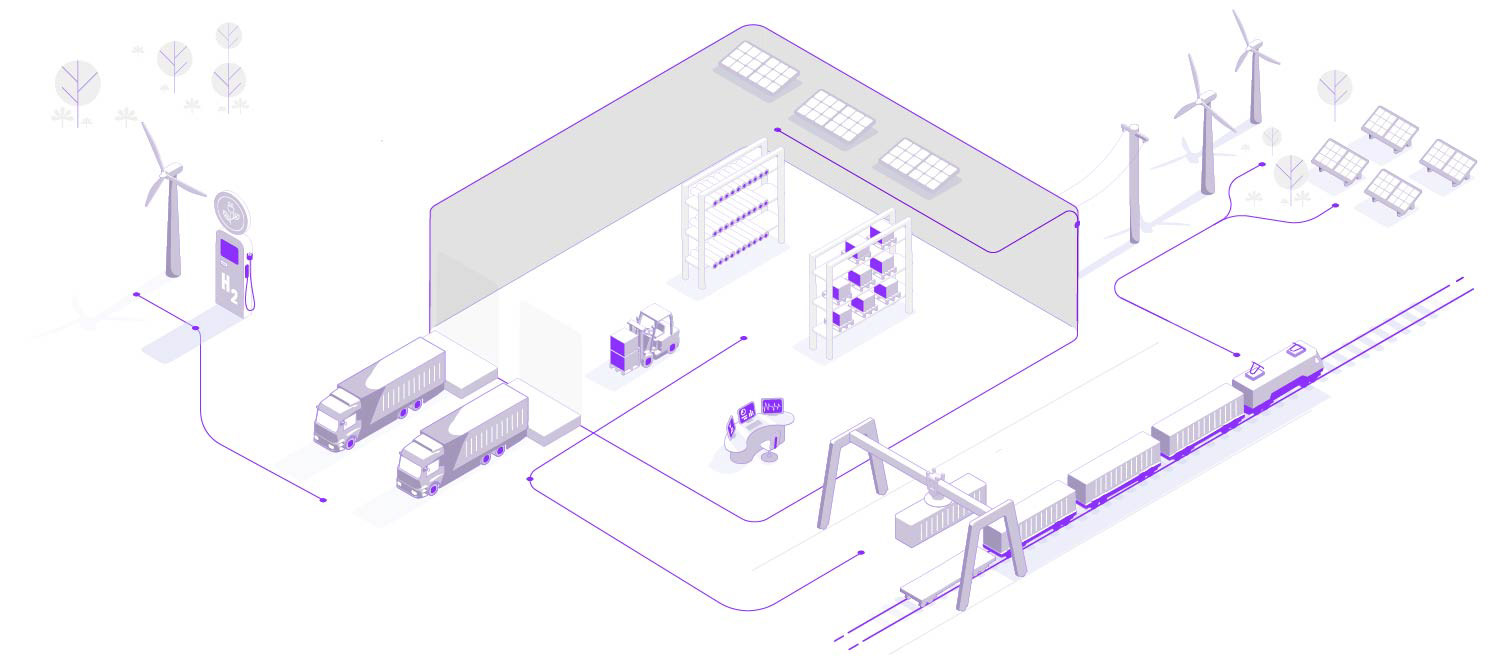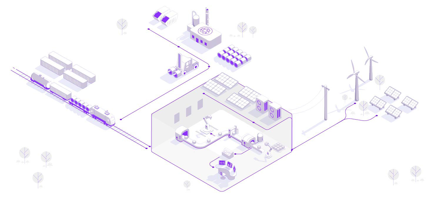 This vector data visualization shows how renewable energy is produced, distributed and used across different sectors. I designed an isometric 3D landscape to illustrate the flows between generation, storage, mobility and industry, and to show how renewable energy moves through each part of the system. The illustration is used in presentations and reports to help non-technical audiences quickly understand the overall energy network.