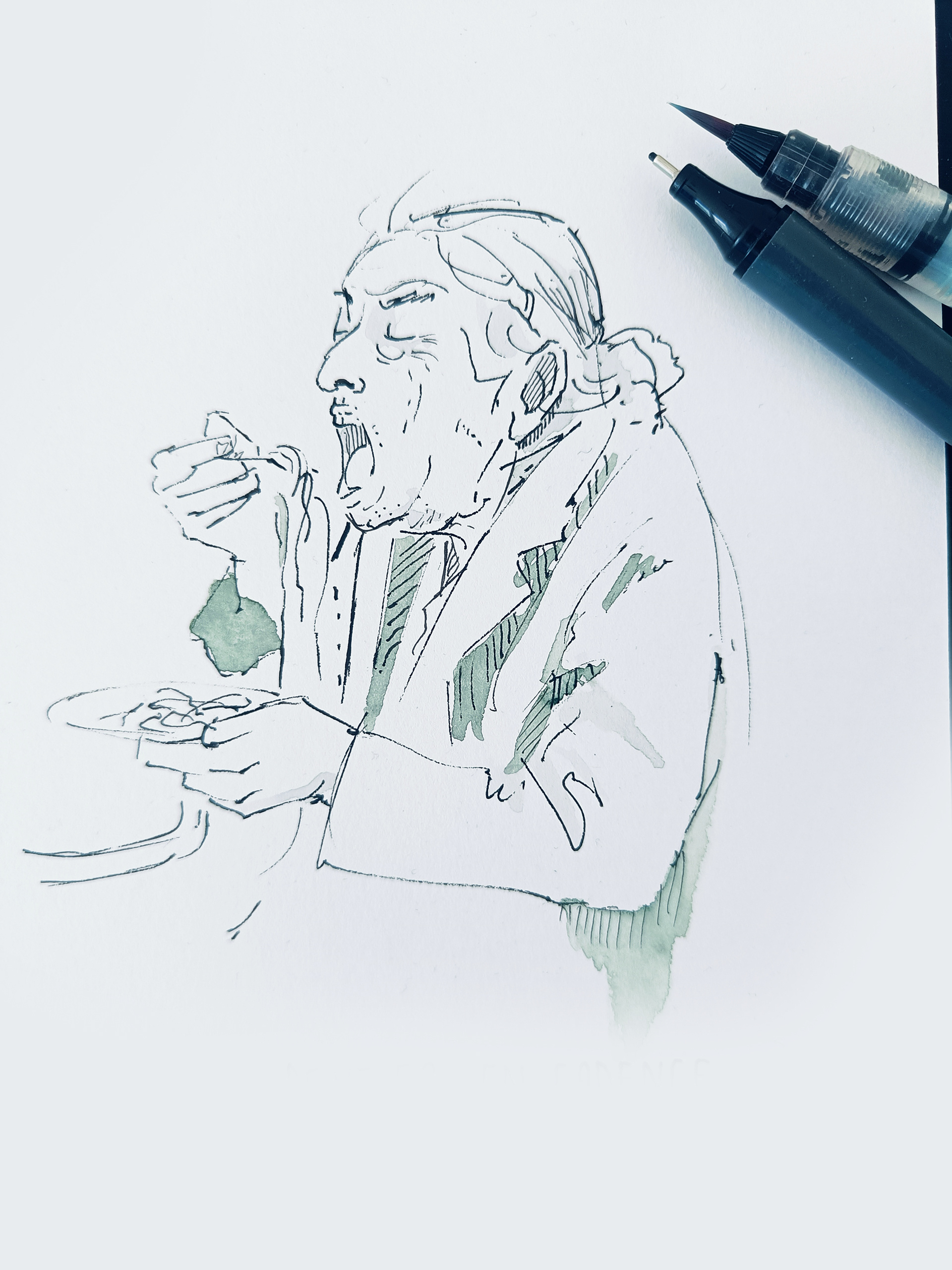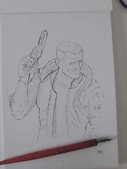 Ink sketches with people.